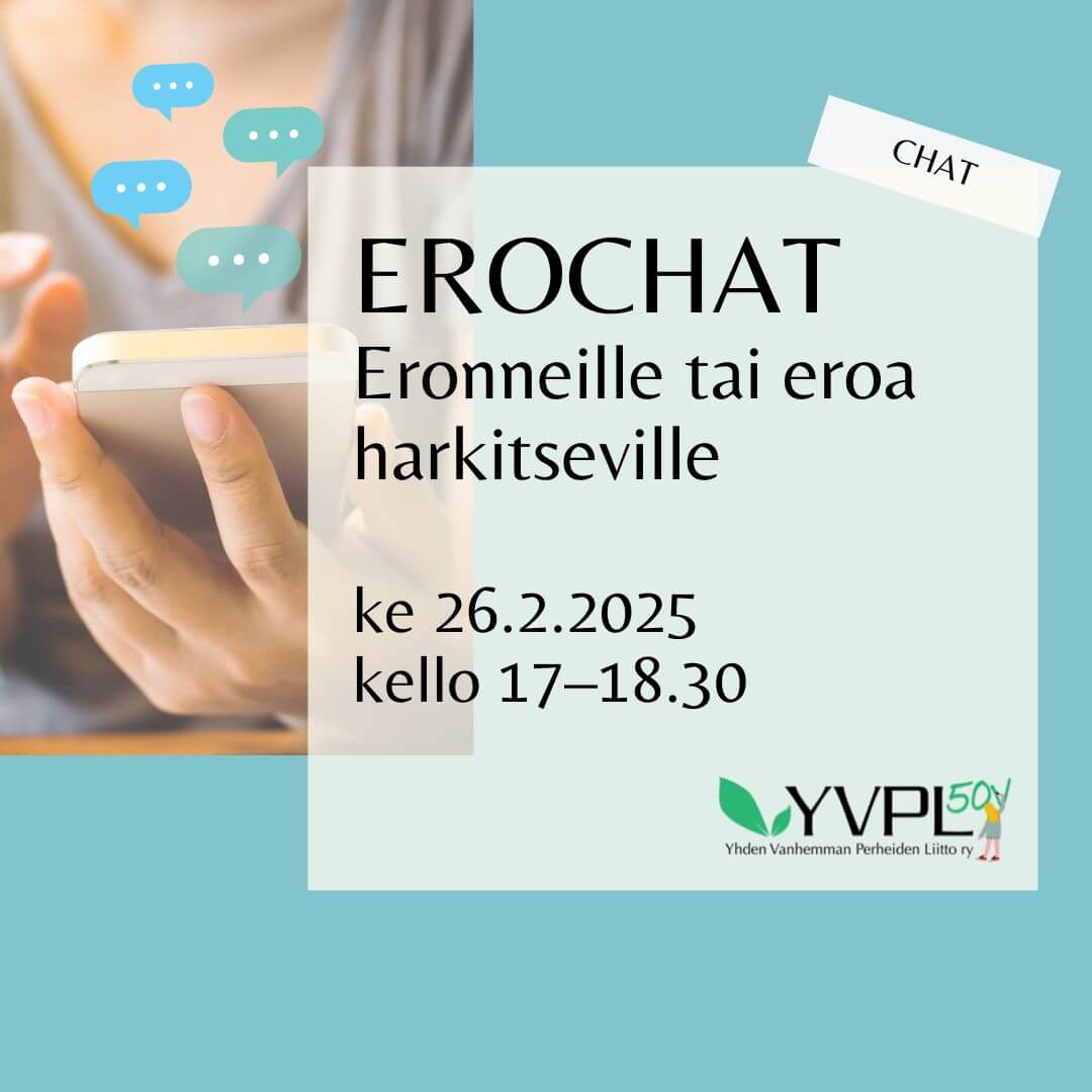 Chat on tarkoitettu kaikille eronneille tai eroa harkitseville. Chattiin voit kirjautua anonyymina. Mukana on vertaisohjaaja ja liiton työntekijä. Tervetuloa.